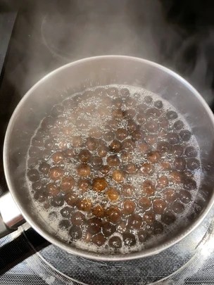 - In the small saucepan, heat up the water and tapioca balls. Bring it to boil for 2 minutes and boil in low for additional 4 to 5 minutes.