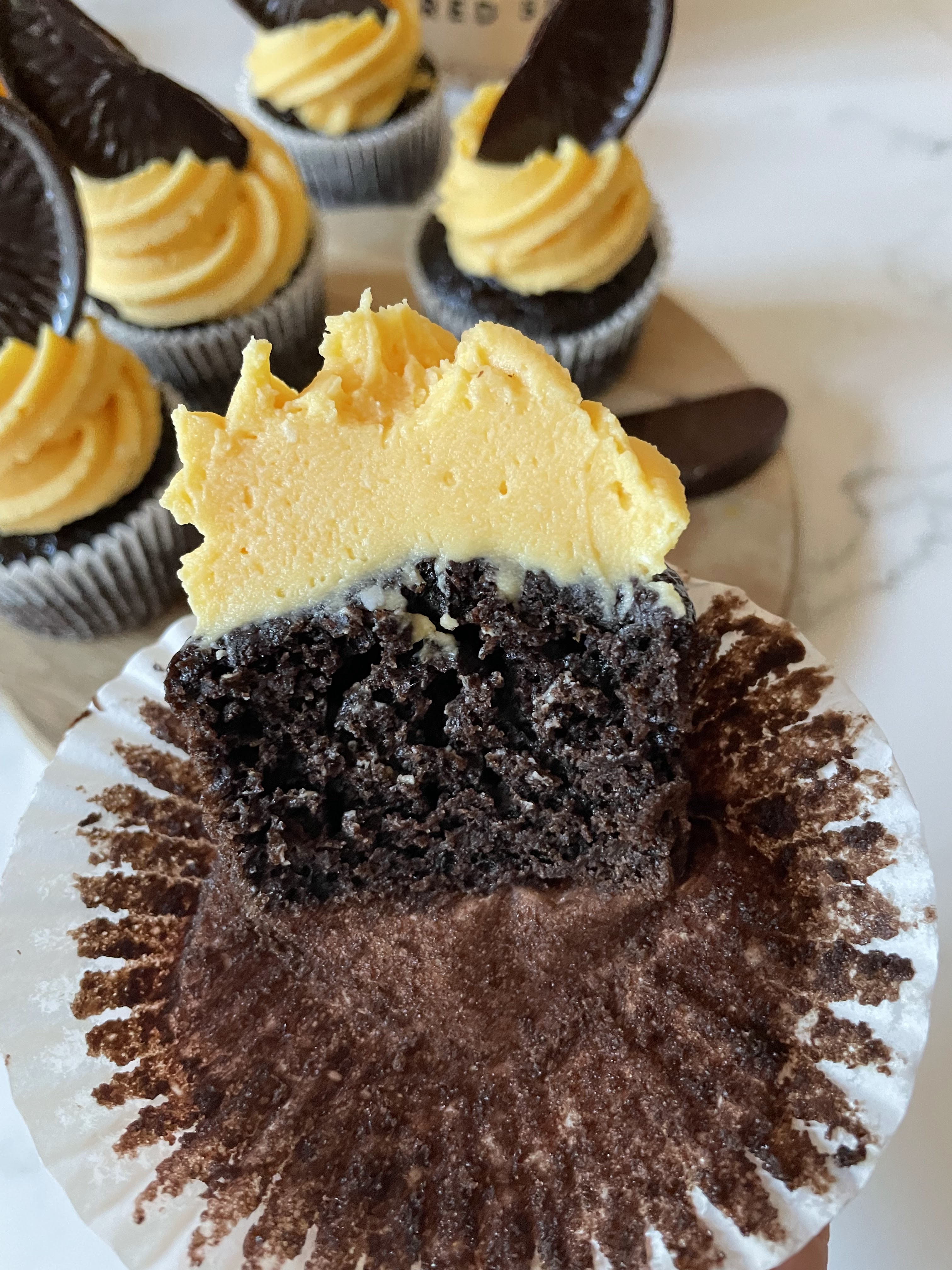 These gluten free chocolate cupcakes with orange cream cheese buttercream are all you need for this holiday seasons! My kids can’t tell they are gluten free!