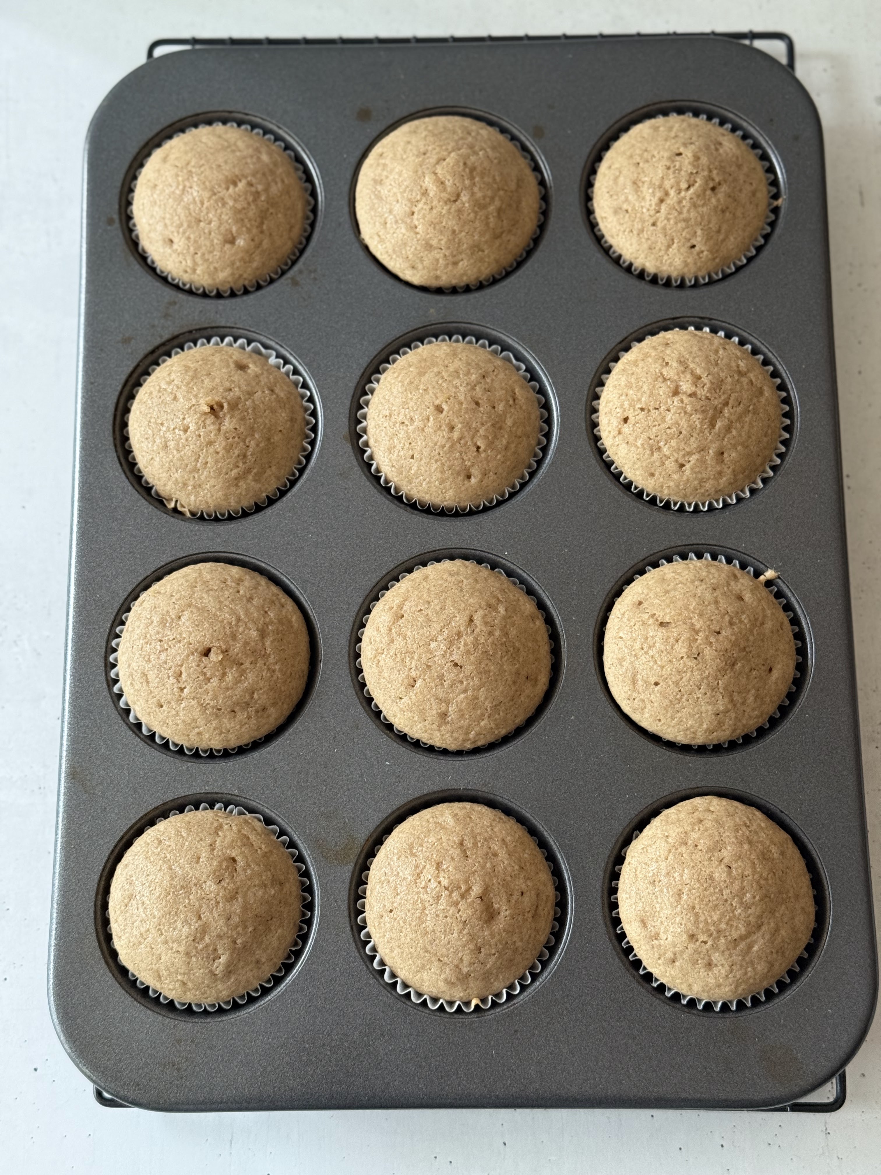- Preheat the oven to 325°F. Line a cupcake tin with 12 liners and set aside.