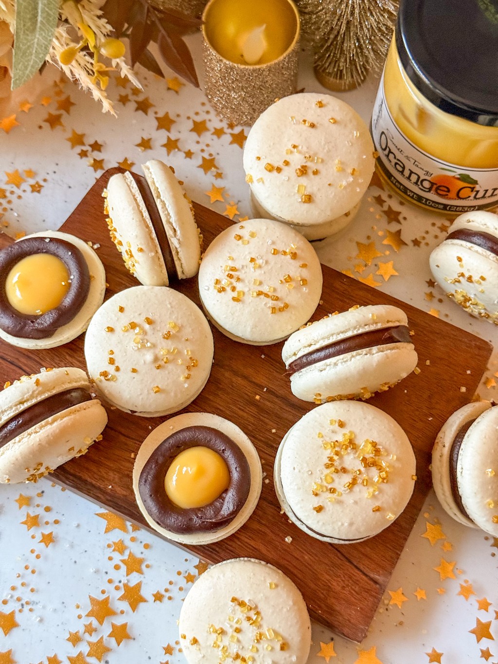These dark chocolate orange macarons are filled with dark chocolate ganache and Paradigm Orange Curd. They are perfect for celebrating for New Year!